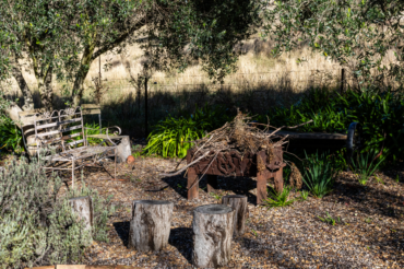 At Jody’s stunning farm studio, a long window hovers above the bedhead for an eyeball-to-eyeball encounter with a mountain that appears to be standing, right there, in the room. “Gulaga demands your attention,” she offers. “There is no way anyone can explain how we did not lose our town in that Gosper’s Mountain fire. The whole back of the mountain was burning and every prediction for weeks stated that the village was going to go up in flames. It didn’t happen. Ten years ago, Gulaga did the same thing, and the villagers say it was that mountain protecting the town from the flames.”